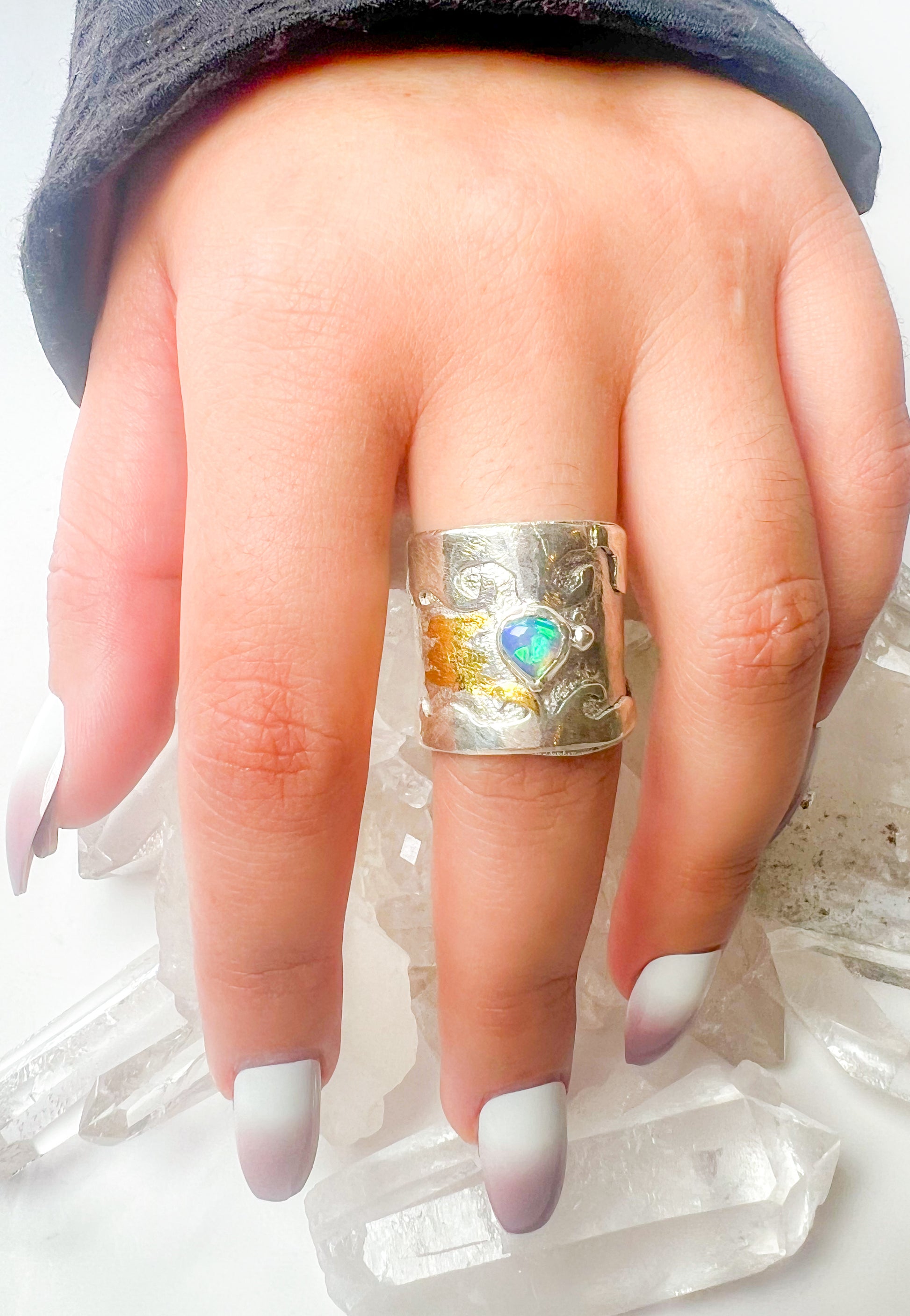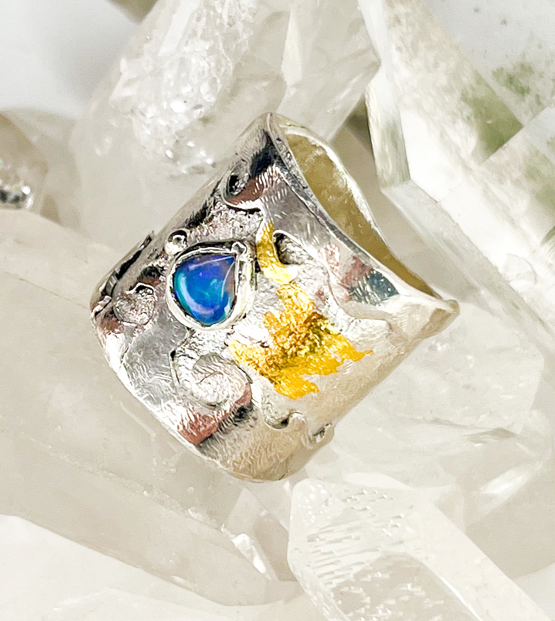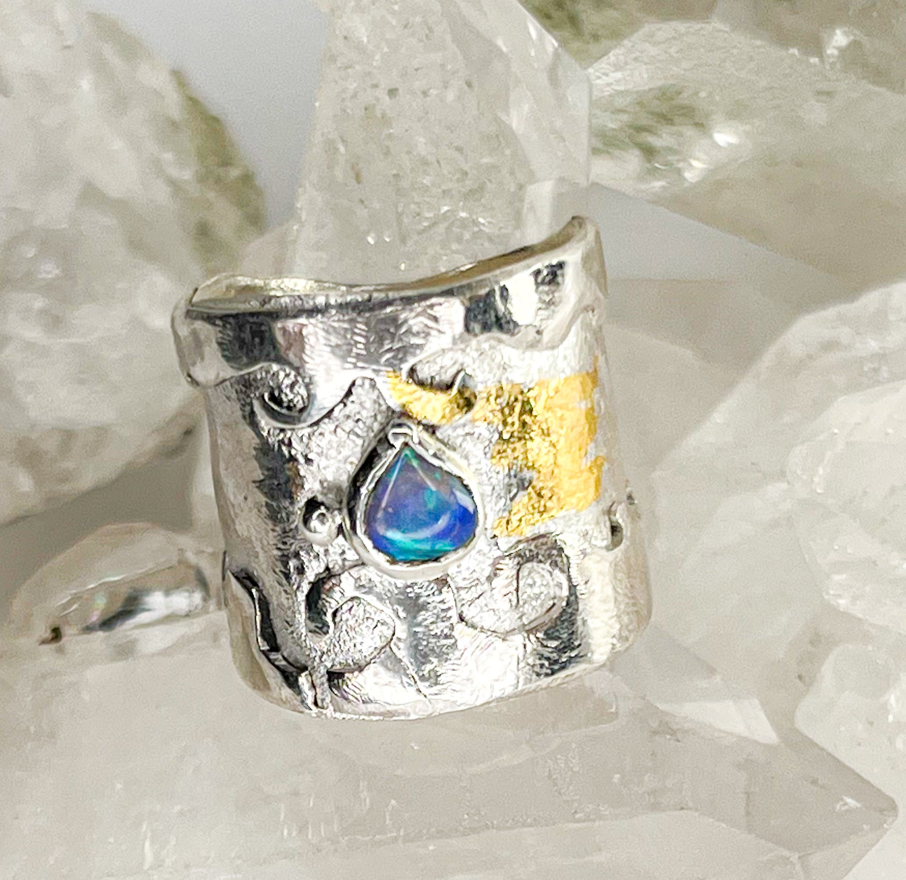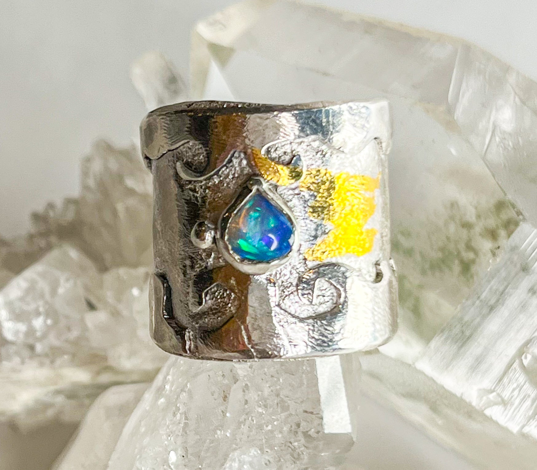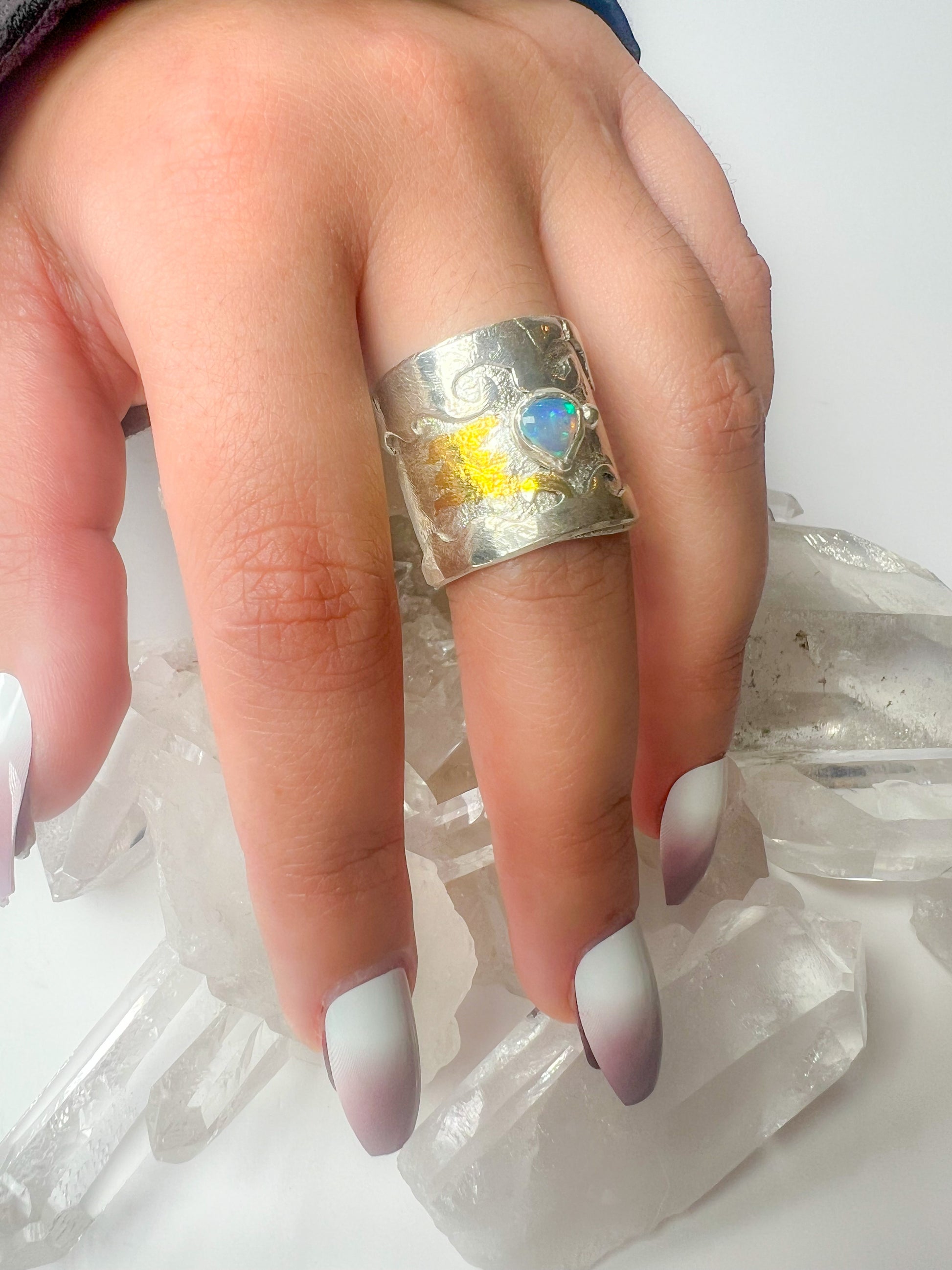 Sterling silver gold ring with Australian opal